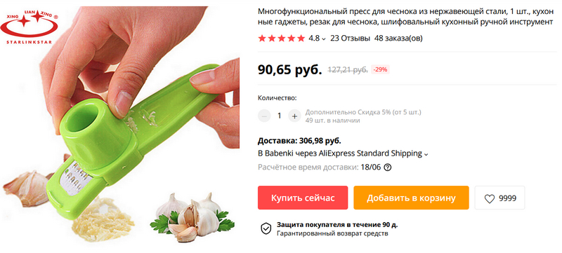 Хорошая замена чеснокодавке, которую замучаешься потом отмывать - маленькая чеснокотерка с защитой пальцев. Заказал себе, мне очень актуально.