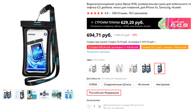 Если вы любите читать со смартфона, лежа в ванной, а смартфон у вас не водонепроницаемый, то хорошая мысль - помещать его при этом в водонепроницаемый чехол от MPOW. Есть доставка из РФ.