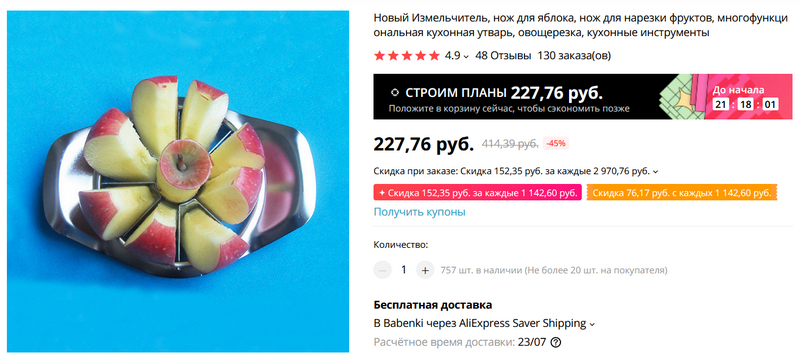 И вот эта штука понравилась - мгновенно разрезает яблоко на дольки, удаляя при этом сердцевину.