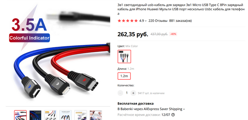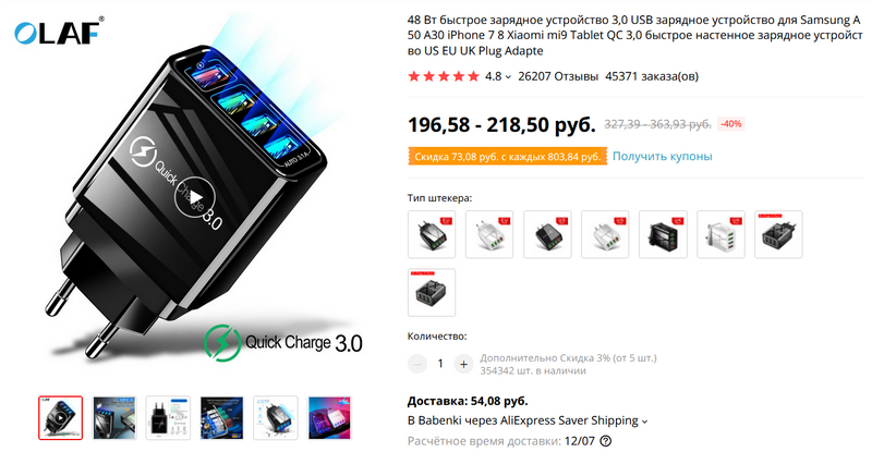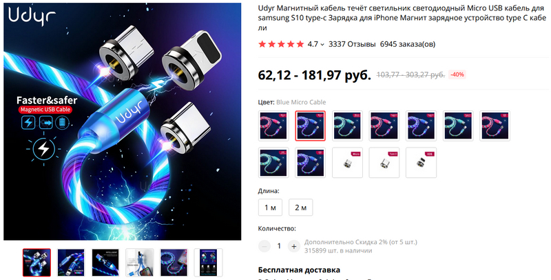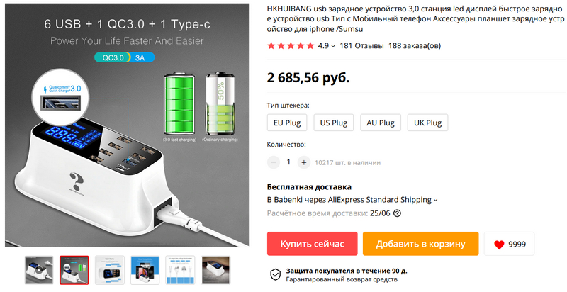На странице первого же кабеля с подсветкой есть ссылка на 4-х портовую зарядку 1QC 3.0 + 3 обычных 3,1А с ценой в два раза ниже, чем 4-х портовая зарядка из самой статьи несколькими продуктами ниже.