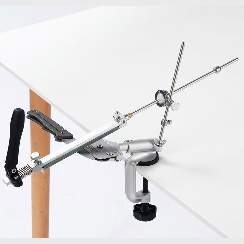 И зажим шире - меньше вероятность, что нож сдвинется при заточке.