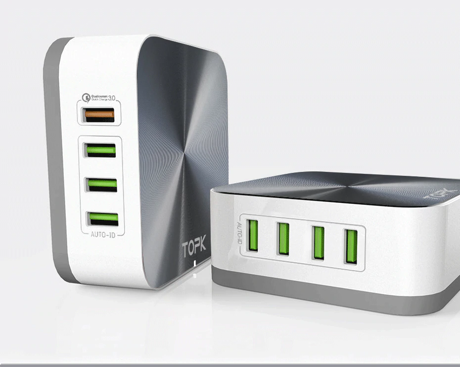 Четырехпортовый адаптер для зарядки. Есть порт с поддержкой QC 3.0 до 48 Ватт.