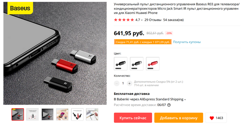 Прошу прощения, но "вот такой ИК-адаптер от Baseus" - Micro-USB, а не Type-C.