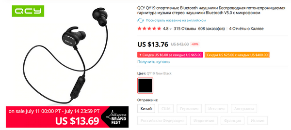 На наушники QCY QY19 сегодня и завтра дают очень существенную скидку, продают буквально за копейки. А наушники - просто отличные, я их до сих пор считаю лучшими беспроводными наушниками по соотношению цена-качество. (Внимание, пользователи пишут, что это новая версия QCY QY19: у нее BT 5.0, что хорошо, но нет aptX, что не очень хорошо.)
