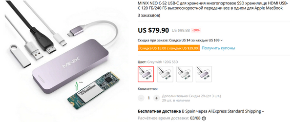 Upd: Очень полезная штука для ноутбуков: внешний SSD на 120 или 240 ГБ, он же хаб с портами: HDMI, Type-C и два USB 3.0.