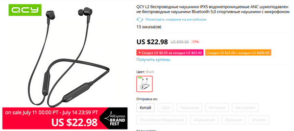 На QCY L2 также очень большая скидка. А они интересные - водонепроницаемые, долгоиграющие и еще и с активным шумодавом: я их уже купил поизучать.