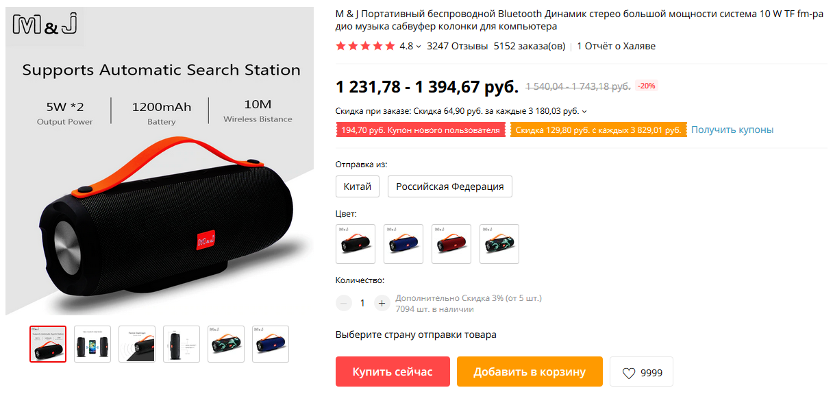 - Вот достаточно мощный портативный сабвуфер M&J Portable Wireless Bluetooth Speaker Stereo 10W system TF FM Radio Music Subwoofer Speakers for Computer