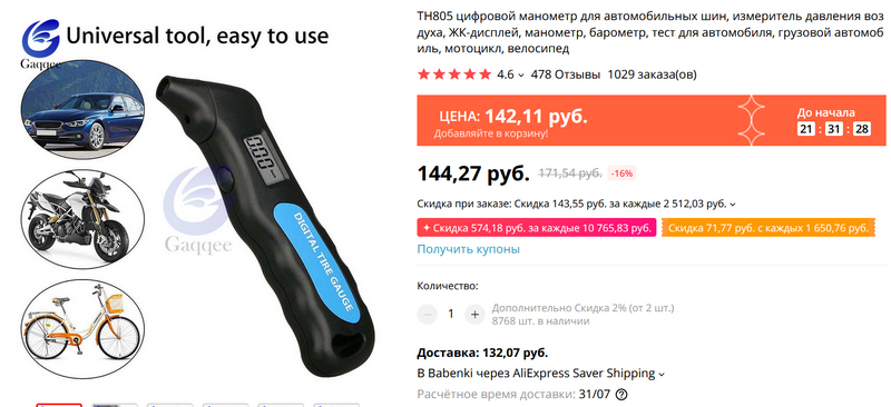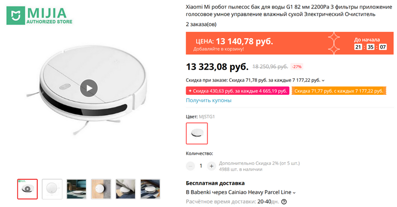Кроме грядущей летней распродажи цену можно снизить промо-кодом CJSJDTDLOKB2 (на 358,86 руб) и купоном магазина (на 358,86 руб.). Все скидки есть на странице товара.