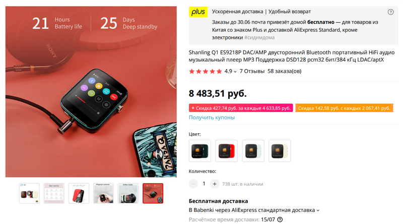Компактный качественный Hi-Fi аудиоплеер с очень большими возможностями. На чипе ESS Sabre ES9218P. В издании iXBT - подробный обзор этого плеера. Прочитал - прям впечатлился, закажу поизучать.