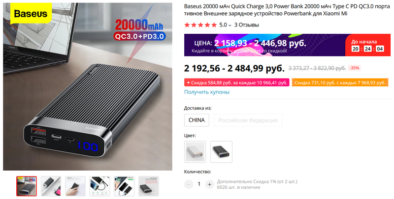 Для России - в чём профит этого пауэрбанка 20000 за 2450, если есть HIPER Power Bank PSL30000 за 2390? А 2000 у них дешевле 2000?