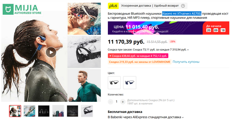 Upd: Выяснилось, что это AfterShokz XTrainerz и есть (видимо, Xiaomi их перекупили), и это действительно прежде всего наушники для плавания (в них есть MP3-плеер).