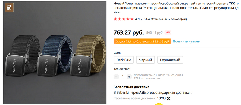 Ну и в тему к ремню - наременный чехол для смартфона различных цветов. Доставка 125 рублей, так что цена получается 358 рублей.