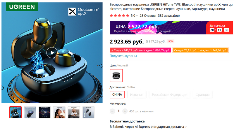 Компания Ugreen выпустила TWS-наушники HiTune, которые выглядят очень интересно: водонепроницаемые, с поддержкой SBC, AAC и aptX, зарядный кейс с индикатором, до 9 часов на одной зарядке (до 27 часов с зарядкой в кейсе).