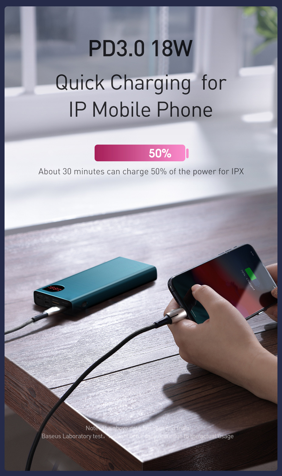 Новый недорогой внешний аккумулятор от Baseus на 20000 мАч с поддержкой QC 3.0 и PD 3.0 (может заряжать ноутбуки с USB-C) до 18 Ватт. Два порта USB-A, порты USB-C и microUSB. Порт USB-C у него может использоваться как для зарядки устройств, так и для зарядки самого аккумулятора. Есть дисплей с уровнем заряда.