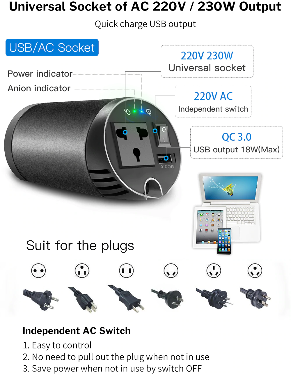 На алиэкспресс нашел подобный своему - инвертор XP Т300 с поддержкой QC 3.0 USB