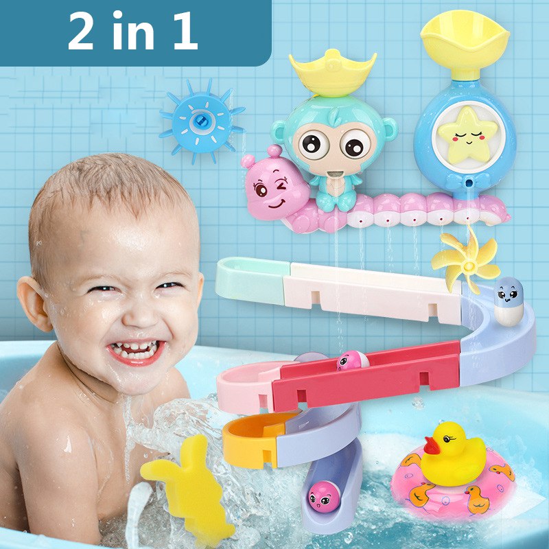 Всем привет! Делюсь сегодня детскими развлечениями для ванной. Мы брали самый простой набор, нам хватает, причем играет не только младший ребенок, но и средний. Вроде бы все просто - настенный трек, довольно широкий, простые игрушки для спуска - капсула, шарик, но главное, что детям нравится. Даже просто воду из душа по треку спусуать. Крепится присосками плотно, стыки не проливаются, да и вообще пластик не самый китайский из возможных. В общем, хорошее развлечение для детей.