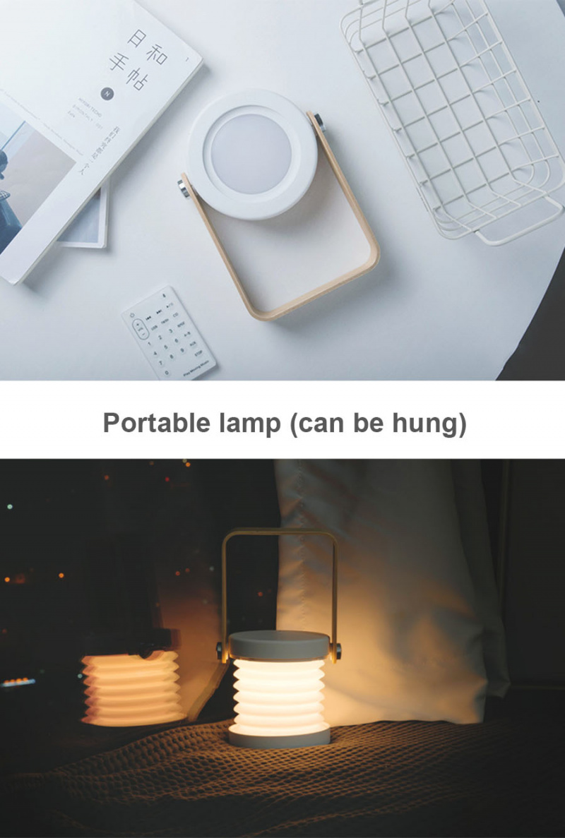 Интересная трансформируемая лампа "3 в 1". Питается от USB, имеет аккумулятор 1200 мАч.  Теплый белый свет, три уровня яркости. Может использоваться как настольная лампа, как подвесная лампа, как переносная лампа и как ночник. На фото ниже показано, как она трансформируется.