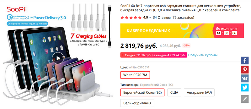 Я себе заказал: у меня в гостиной вечно бардак с зарядкой смартфонов и планшетов всего семейства, надо это все упорядочить.