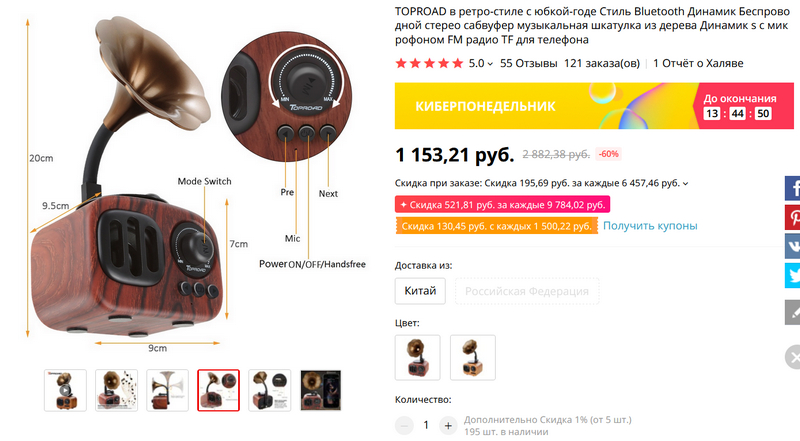 Присмотрел один магазин с интересными заявленными характеристиками.