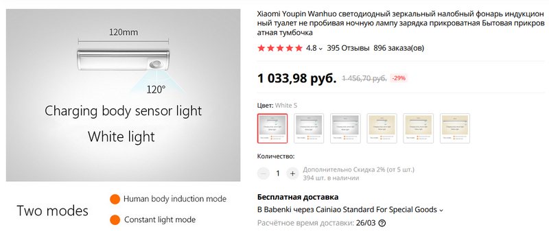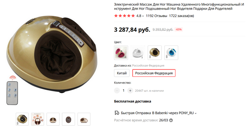 Внимательнее - с российского склада доставка 380 рублей. С китая срок доставки середина апреля