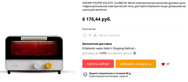 Очень компактная электродуховка XIAOMI YOUPIN SOLISTA 12л/800 Вт Мини. Разогрев еды (не все любят микроволновки), приготовление горячих бутербродов, мяса, рыбы, овощей и так далее. Одинокие мужчины с этой духовкой обретут возможность не париться с мытьем сковородок (да и приготовление в духовке - полезнее, чем жарка), семейные женщины смогут по-быстренькому что-то приготовить, когда голодный и страшный в голодном гневе муж неожиданно придет с работы раньше времени. Дети смогут разогревать бутерброды и смотреть, как расплавленный сыр из бутера пузырится и красиво стекает с хлеба, напоминая знаменитую картину Сальвадора Дали "стекающее по бутерброду время". Пиццу тут тоже можно готовить, но - строго прямоугольную, это издержки формы духовки. Кстати, специалисты говорят, что прямоугольная пицца полезнее для здоровья, чем круглая - там это как-то связано с синекдохой закручивания спирали ДНК.