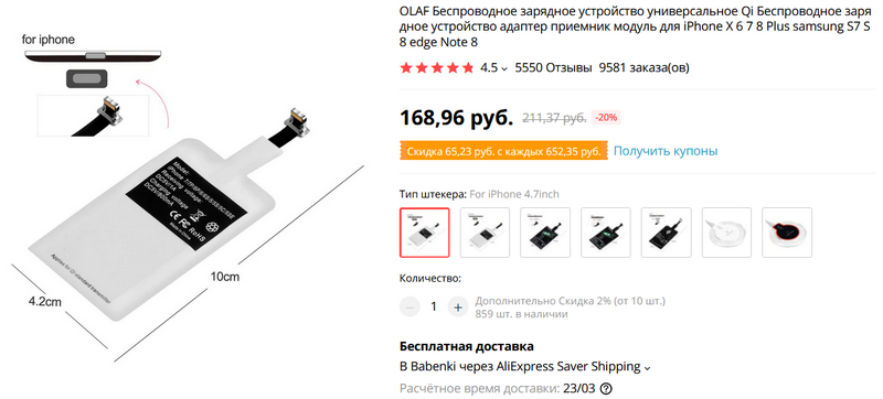 Предупреждаю, Aliexpress периодически придуривается и при переходе по ссылке просит сдвинуть слайдер - мол, для проверки. После этого нужную страницу он все равно не покажет, покажет главную. В этом случае страницу просто нужно закрыть и еще раз нажать по ссылке - тогда покажет то, что надо. В особо тяжелых случаях и со второго раза не покажет (опять слайдер), но покажет с третьего.