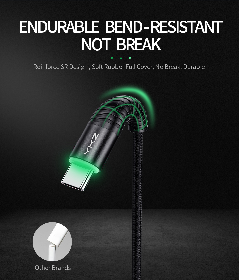 Красивый качественный светодиодный кабель 3A usb type C для быстрой зарядки - ссылка