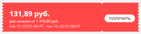 Купон на 132р. ($2) на сумму покупки от 1320р. ($20)
