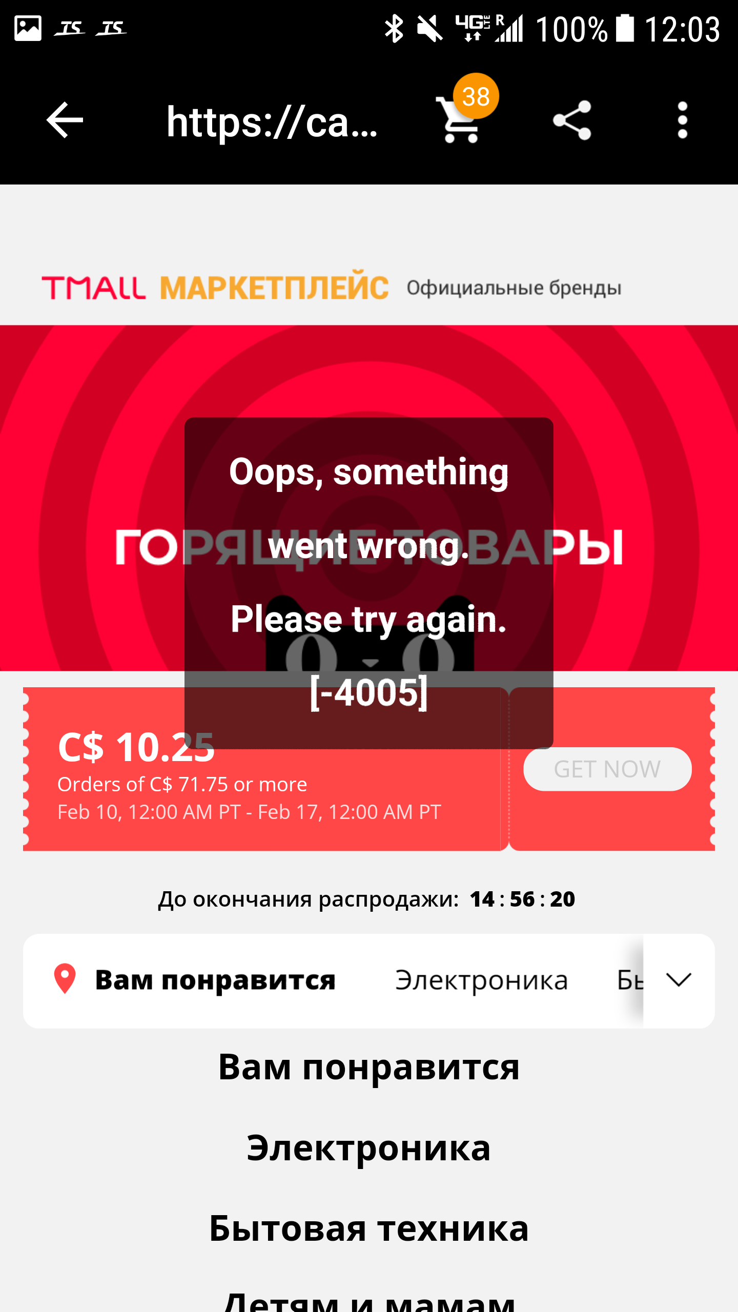 Показывает купон, жму get now - говорит Opps, something went wrong [-4005]