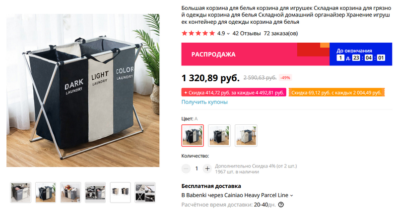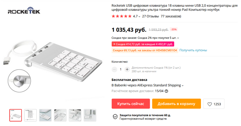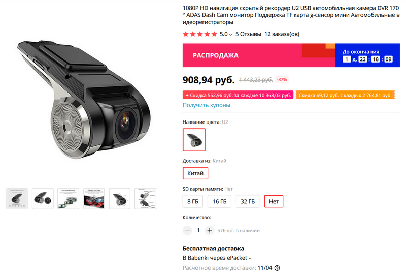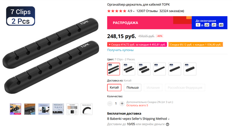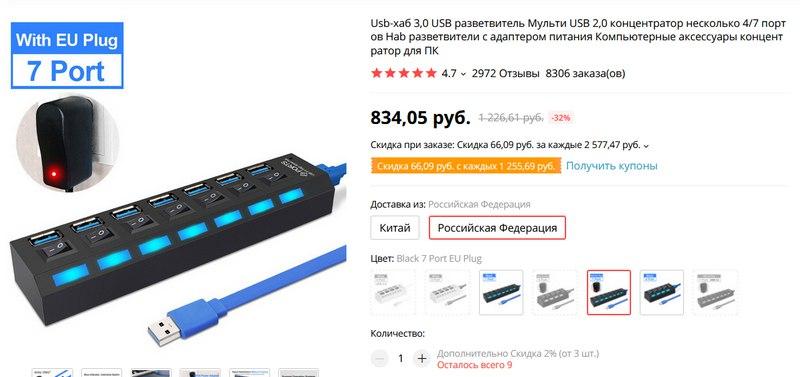 Дополнительно дают спецкупон на 138р. или $2. Если вы еще не знаете как пользоваться спецкупонами и как они работают с другими скидками почитайте этот материал на сайте Алиэкспресса