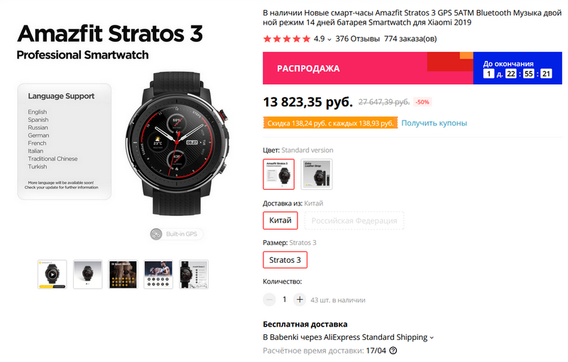 Аmazfit Stratos 3 глобальная версия появились в продаже, я заказал, интересно их поизучать.