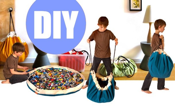 Из мифической книги «сделай сам»: круглый кусок материи с верёвкой, вшитой по краю, позволяет играть и быстро собирать весь набор.
