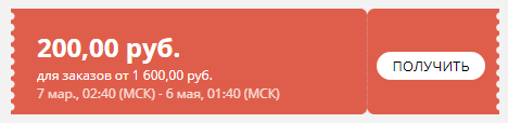Купон на 200 руб. при покупке от 1600 р. получать по ссылке. То есть скидка почти 12,5%.