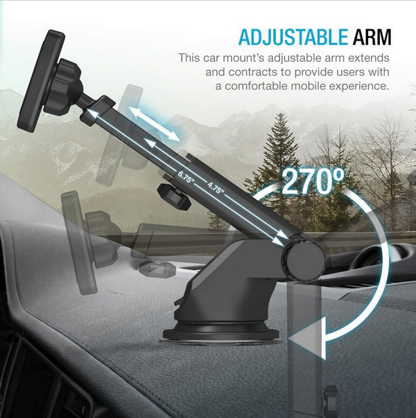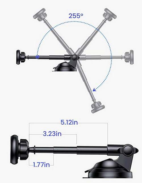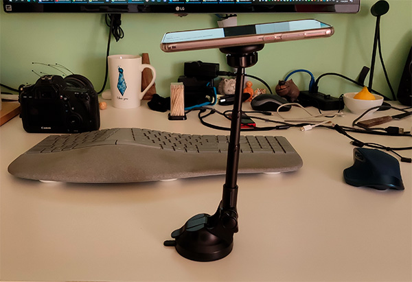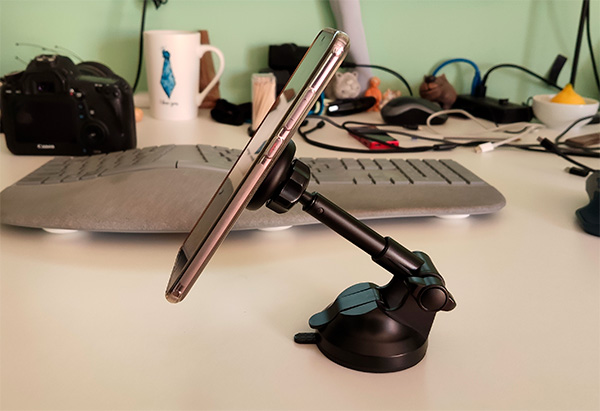 Присоска - шикарная, крепится к чему угодно (что к торпедо машины, что к столу). Держатель телескопический, может выдвигаться далеко вперед, также разворачивается на 255 градусов.