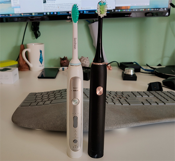 А теперь снова к ней вернулся, пока головки не приедут, а с ней - все не то! Головка намного мягче, пользоваться неудобно, щетка от Xiaomi нравится намного больше - у нее щетина насадки более пружинистая: и пользоваться удобно, и очищает лучше. Плюнул, не стал ждать, когда из Китая доедут - заказал на Amazon. Там дороже на четыре евро, зато привезут завтра.