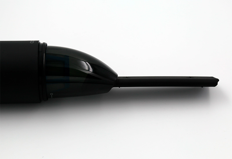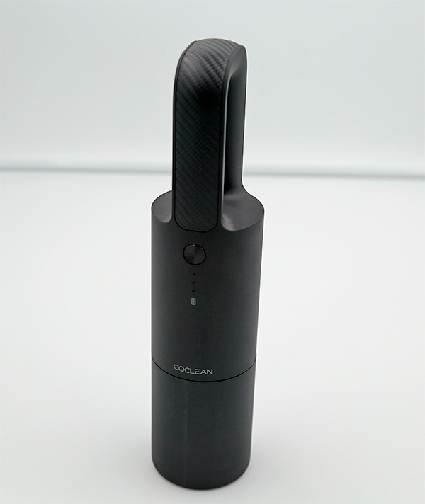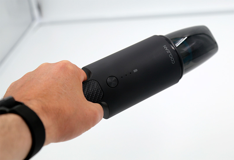 Вот он в рабочем состоянии. Кстати, приезжает полностью заряженный, а одного заряда хватает надолго. Я точное время работы не замерял, но одна полная и тщательная очистка салона в течение, наверное, минут двадцати погасила один индикатор зарядки из трех.