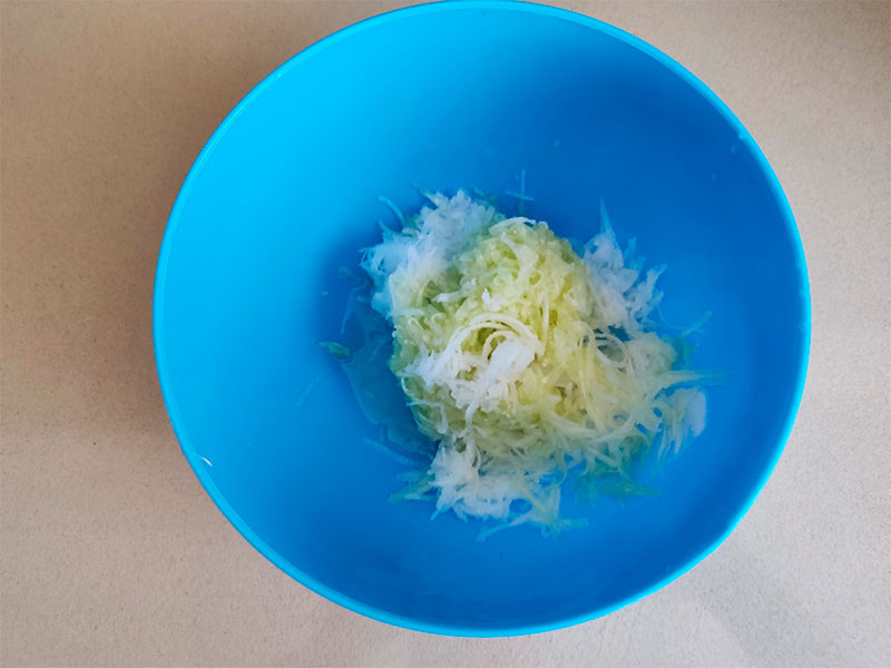 На мелкой терке получается вот так. Консистенция что надо, но сока много выходит.