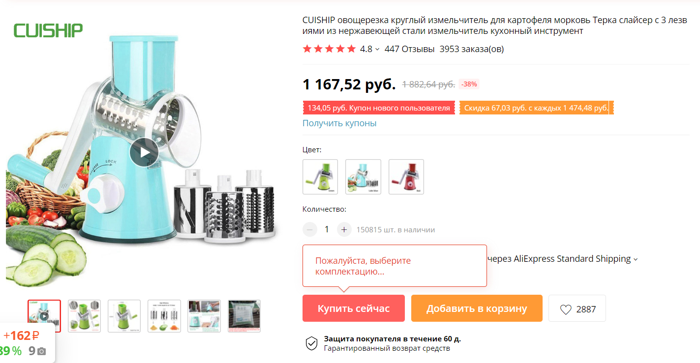 я такого типа электрическую купила. В основном шинкую капусту для пирожков. Когда покупала (2-3 года назад), на Али аналога не нашла.