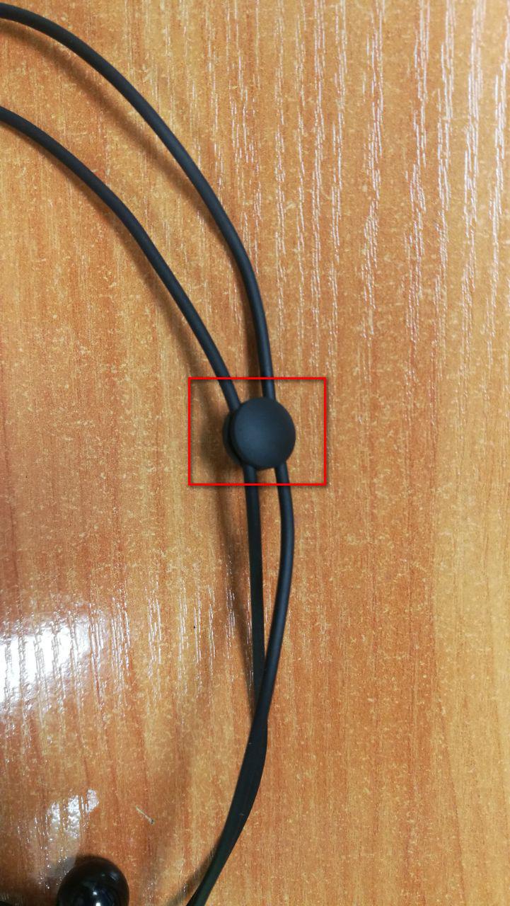 Та, которая вообще-то предназначена для регулировки провода, чтобы он плотнее к голове прилегал.