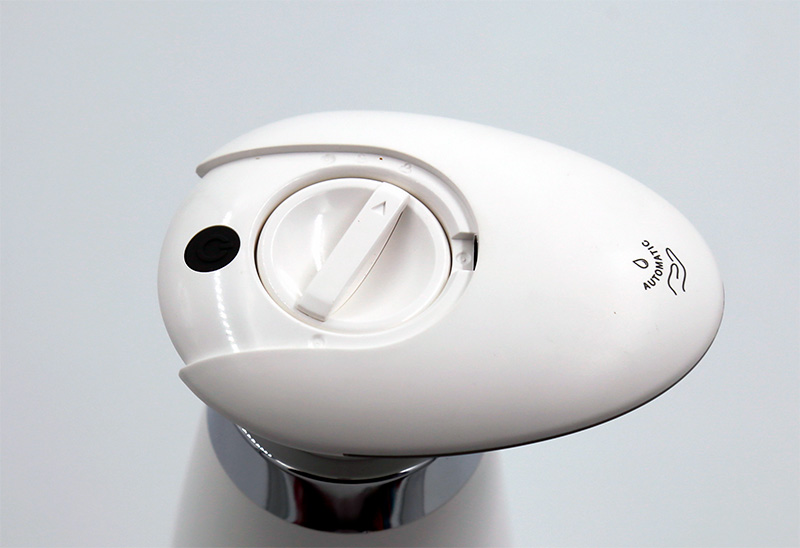 По умолчанию установлена самая большая порция (она показана в ролике ниже) - 4,5 мл., средняя порция - 3 мл. и маленькая - 1,5 мл.. Какая порция установлена - об этом сигнализирует световой индикатор, расположенный в верхней части. Один сигнал - самая маленькая, два - средняя, три - самая большая.