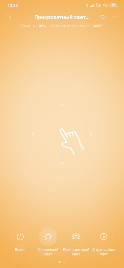 Ну и через приложение лампу можно как угодно настраивать: цветовая температура и интенсивность, цветность, режим "струящийся свет".