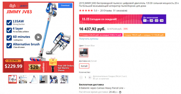 Даже после применения купона ILOVEAE20 (даёт скидку 20 на покупки от 200) и спецкупонов Али цена выше, чем до распродажи 😄