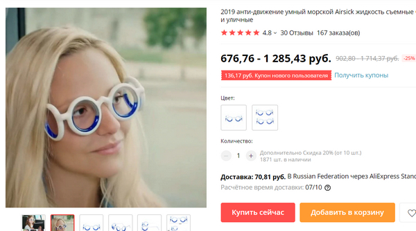 Ну и я все ждал, когда же эти очки смастерят шустрые китайцы. Дождался, смастерили. Стоят на порядок дешевле. Реальных отзывов пока мало, только звездочки о том, что быстро доставили. Есть один негативный отзыв о том, что очки плохо держатся на ребенке и сползают. (Но тут, конечно, многое зависит от возраста ребенка и размеров его головы.) Я заказал, проверю. Младшего Экслера иногда укачивает, когда мы ездим куда-нибудь в горы. Вот и посмотрим, поможет или нет. Если сама технология работает хорошо, а китайский клон неудобный, ну тогда закажу оригиналы. Если клон нормально будет работать - ну и ладно тогда.