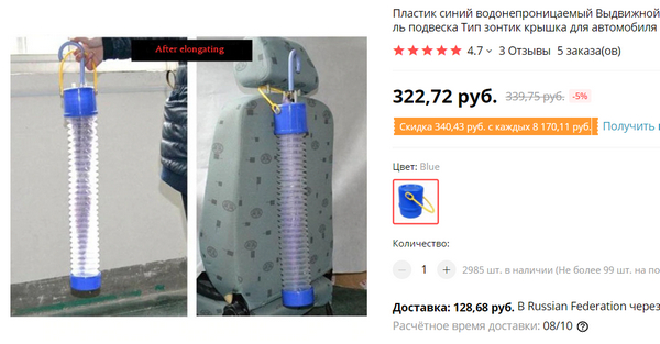 Раздвижной тубус для машины для сухого и мокрого зонта. Ну, для сухого, может, и не очень актуально, а вот для мокрого - очень даже, насколько я помню по российским погодным реалиям. Так вода будет стекать в тубус, а не на коврик.