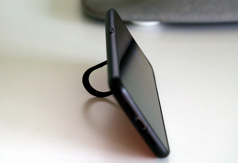 примагничиватся к чему угодно и не мешает ни зарядке, ни работе NFC - очень удобен