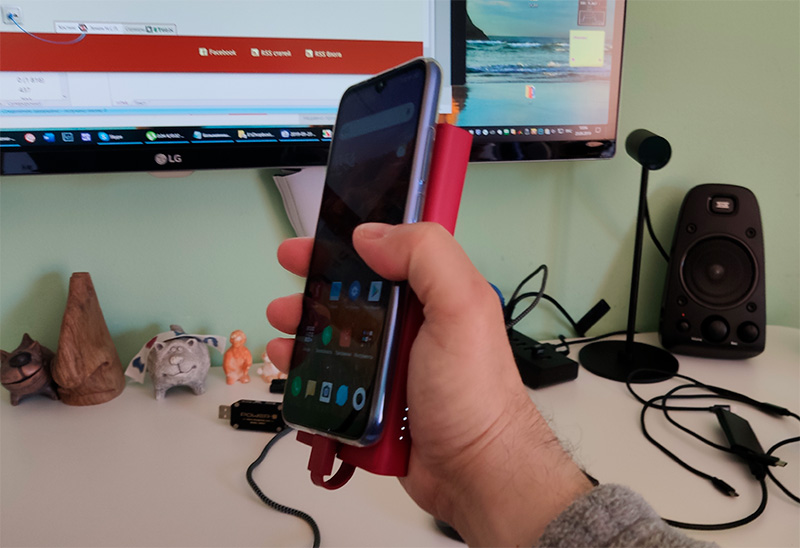 Не хватает демонстрации процесса зарядки от встроенного кабеля. И как этот бутерброд телефон+акк умещается и умещается ли вообще в одной руке.
