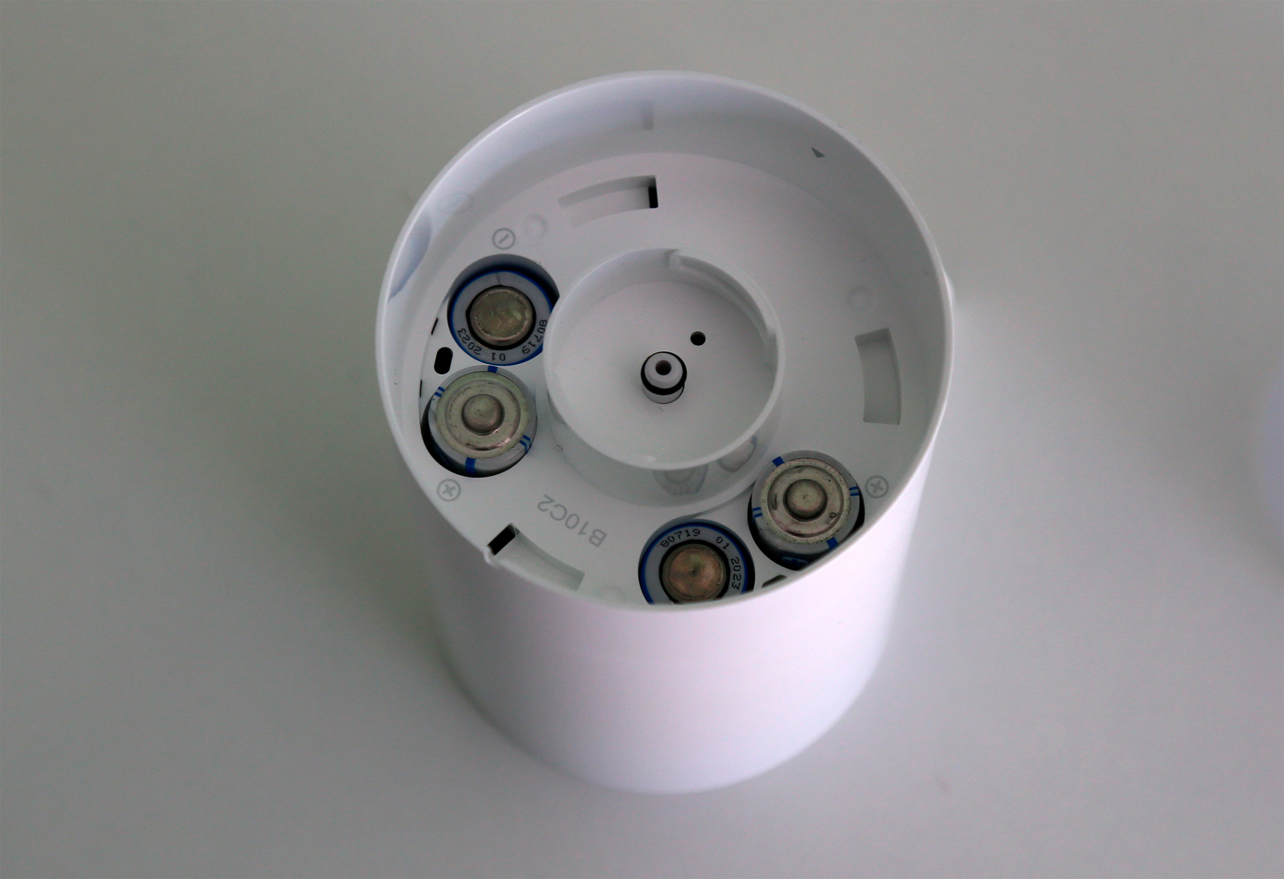Вставляем четыре батарейки АА, закрываем крышку. По отзывам, этих батареек хватит минимум на год.