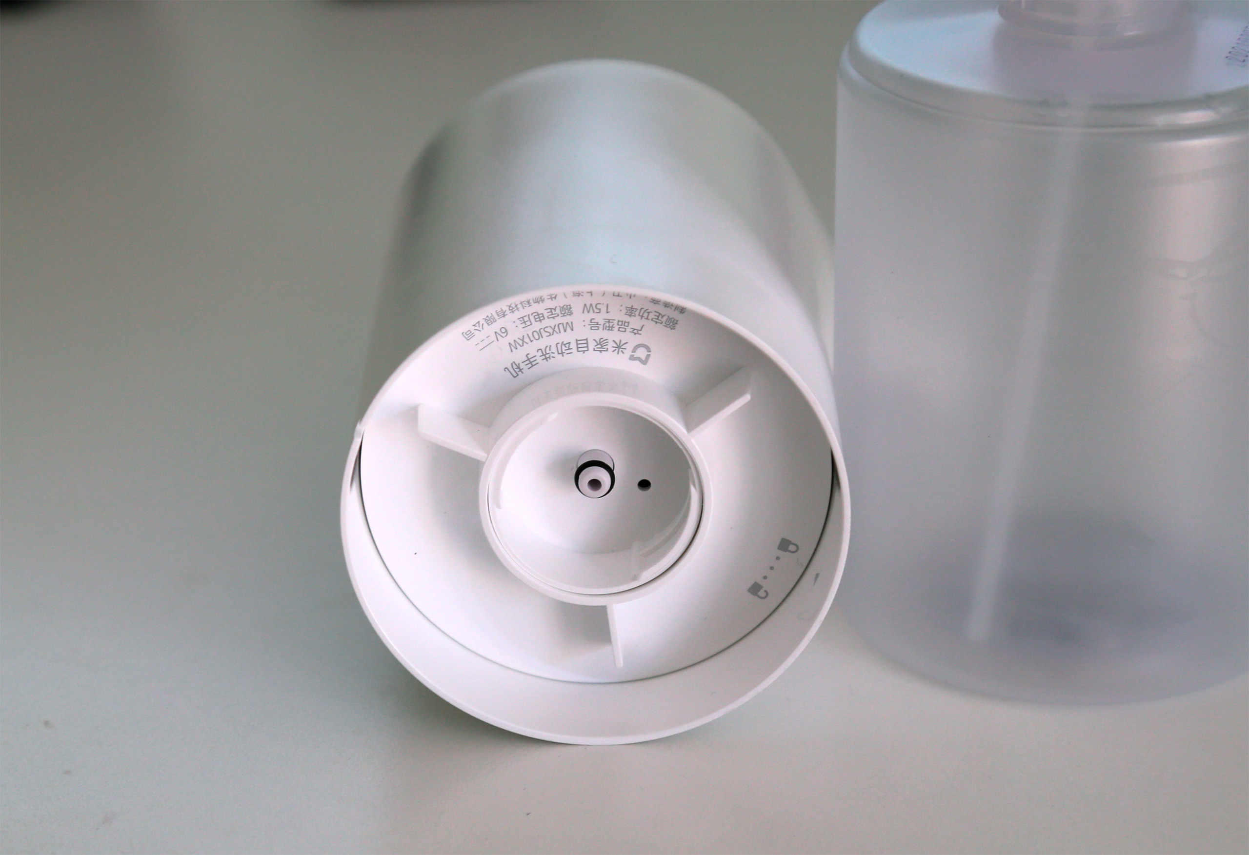 Диспенсер первый раз включается кнопкой, расположенной сверху. Дальше ее трогать не нужно, там загорится индикатор, когда будет пора менять батарейки. Работают оба диспенсера совершенно одинаково. Вот небольшой полуторачасовой ролик с их сравнением. Новый диспенсер издает звук рассерженного барсука, которого разбудили в шесть утра после тяжелого трудового дня, а старый диспенсер жужжит более оптимистично - как будто Карлсон пролетает где-то неподалеку.