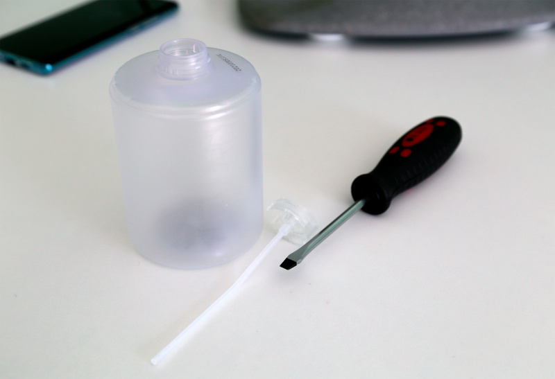 Ну, будучи хитро сделанным, я тоже отвёрткой сорвал крышку оригинального контейнера и залил туда своего мыла. Но с дозировкой, раза в 3 больше оптимальной, ничего сделать нельзя, плюс постоянные глюки холостых срабатываний.