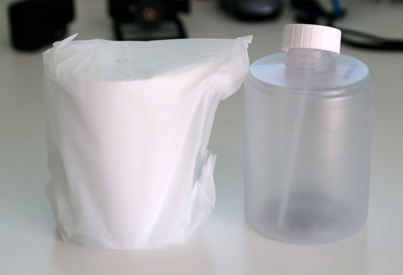Напомню, что у старого диспенсера контейнер расходовался месяц. Новый, судя по размеру, продержится недель шесть. Впрочем, проверим.